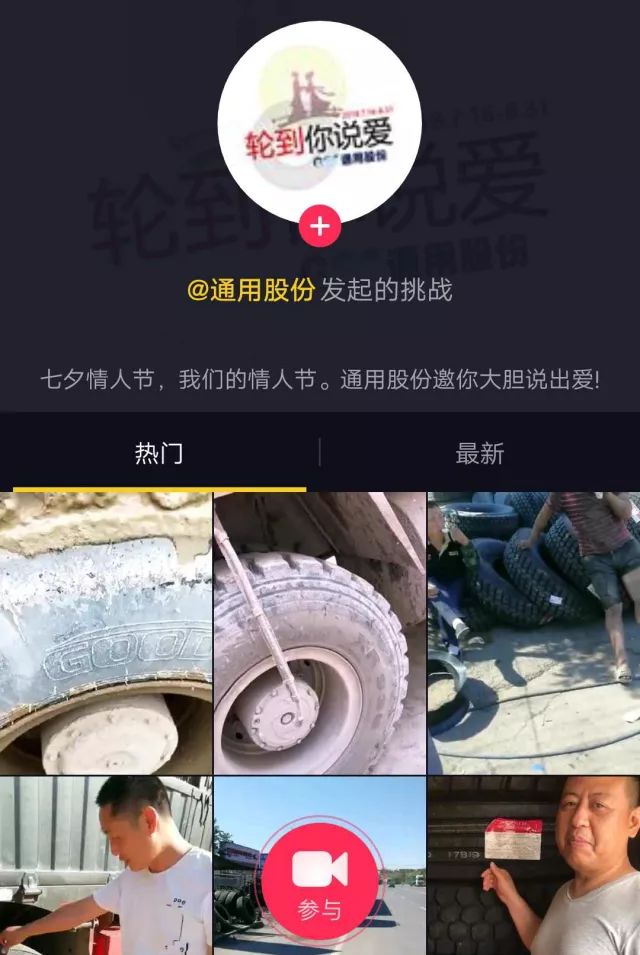 線下活動豐富多樣,線上互動亦是精彩紛呈。今年的七夕愛購月在傳播渠道上也大有不同,除了傳統(tǒng)的門店促銷活動以外,創(chuàng)新采用線上線下聯(lián)動模式,在抖音小視頻發(fā)起“#輪到你說愛”話題挑戰(zhàn),為消費者提供一個盡情展示風采、表達心聲、傳遞“愛”的祝愿平臺,讓廣大司機用戶成為主角,用真實的用戶體驗為通用股份品牌代言!七夕愛購月期間,歡迎廣大司機朋友們到店咨詢、參與小視頻活動、享受購胎優(yōu)惠!