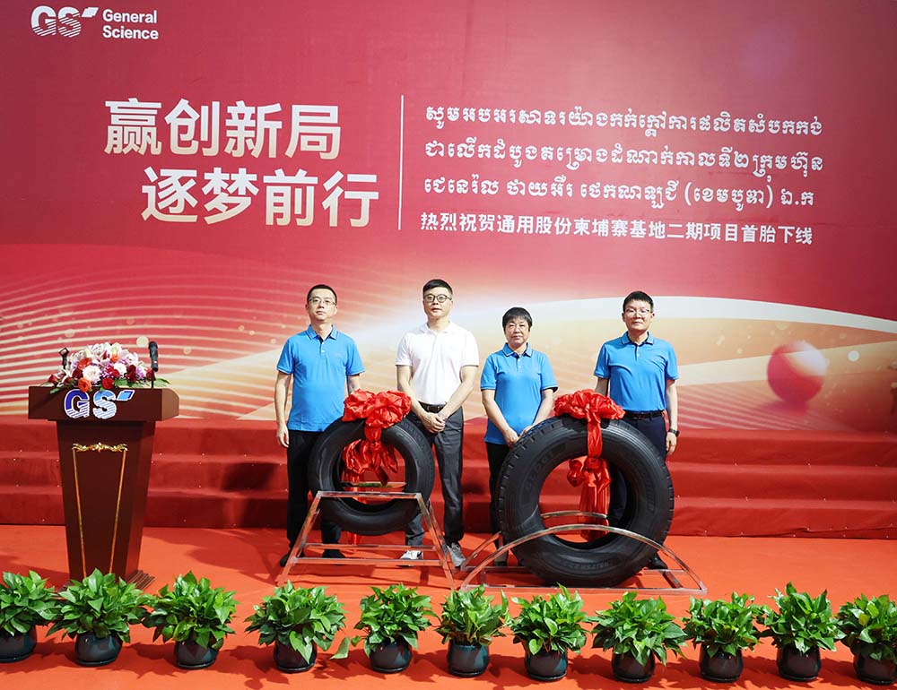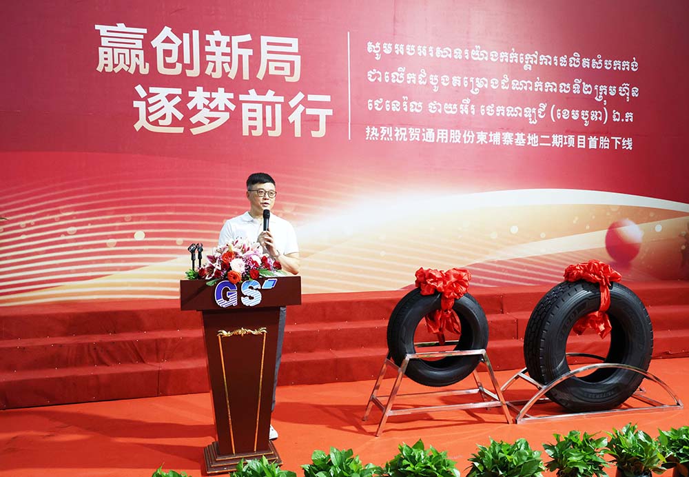 通用股份董事長顧萃在致辭中表示,近年來公司海外雙基地產銷兩旺、產品供不應求。柬埔寨二期項目首胎順利下線是通用股份國際化進程的又一重要里程碑,推動公司產業國際化、智能化、綠色化轉型再上新臺階。通用股份將堅定信心,勇擔重責,全力加速全球化進程,加快轉型升級步伐,實現新的跨越式增長。