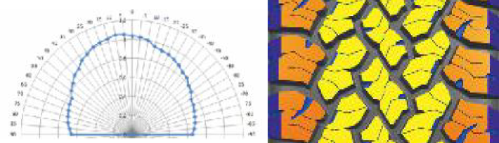 通過計算機仿真優化,優化各花絞塊的強度,各花紋塊堅實有力,可以應對各種嚴苛環境,保證輪胎的牽引能力;