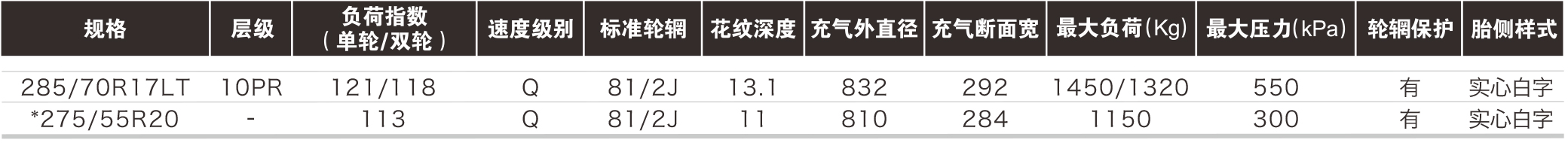 外觀富有立體感,更加強壯,為胎側提供有效防護,提高耐撞耐刺性能;花紋溝底部增加彈石子結構,保證花紋抓地力 。